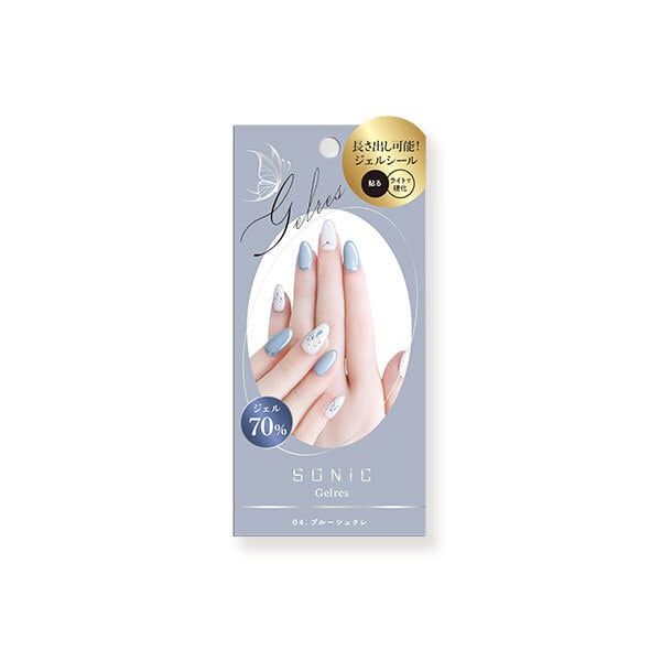 LEDライト硬化タイプのネイルシールです。硬化することで、1週間前後はきれいなネイルを楽しめます。