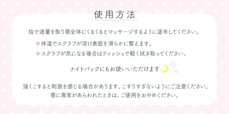 ◯下地(しっとり整えます)翌朝の唇のためにナイトパックにもお使い頂けます。ぷるんと美しい唇へ。